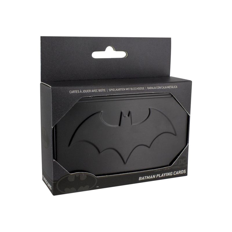 Compuesta por 52 cartas con 2 cartas de joker en una caja metálica para almacenarlas