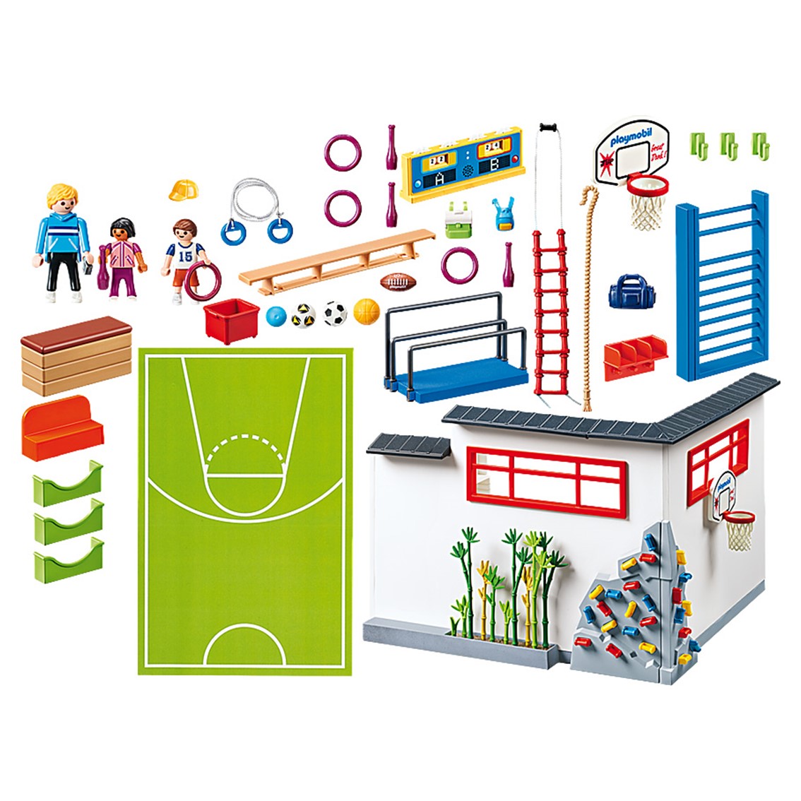Incluye equipamiento para varios deportes de pelota y gimnasia, una