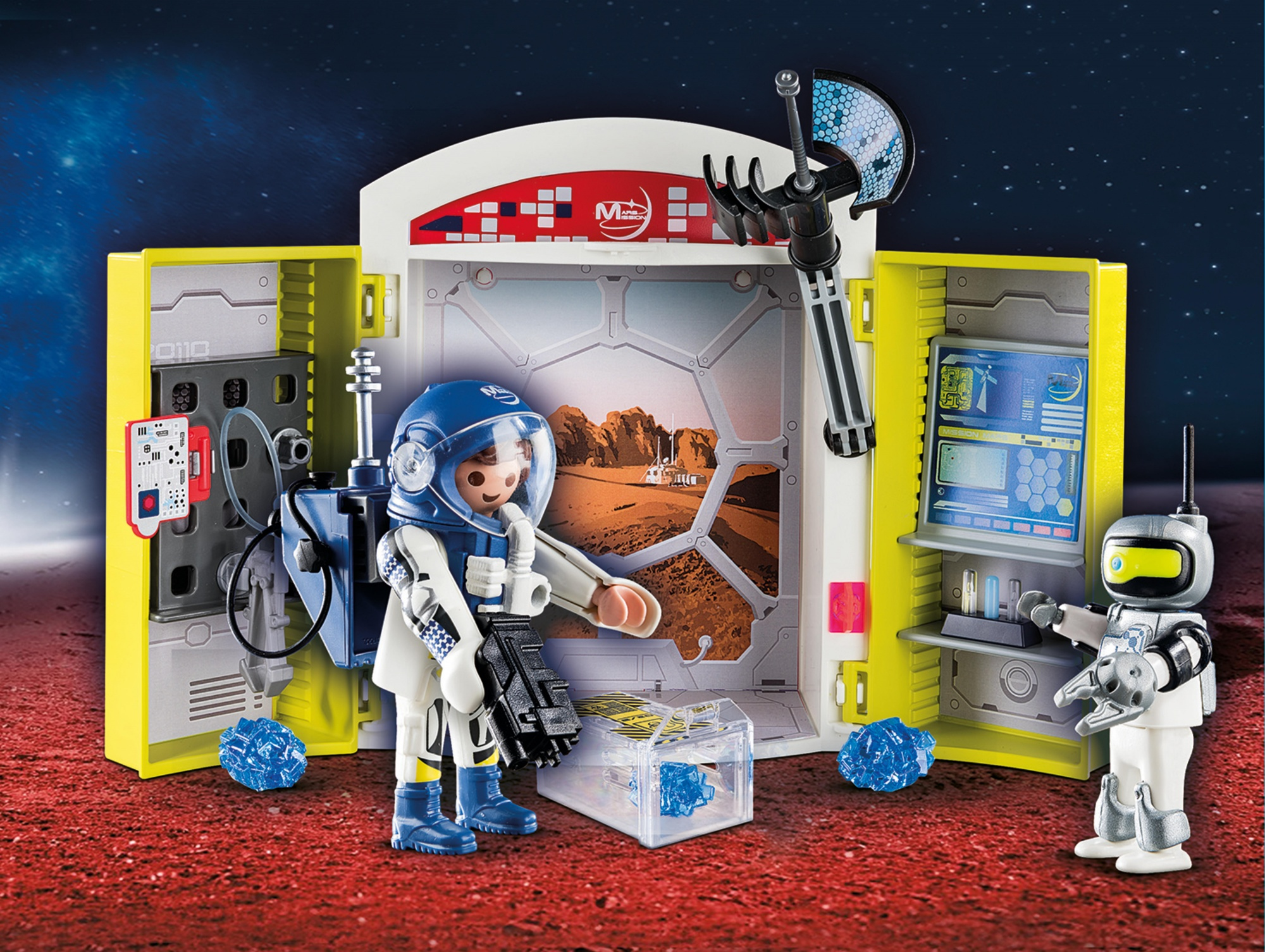 Con astronauta y robot. Incluye brazos de agarre y accesorios para lamisión a Marte.