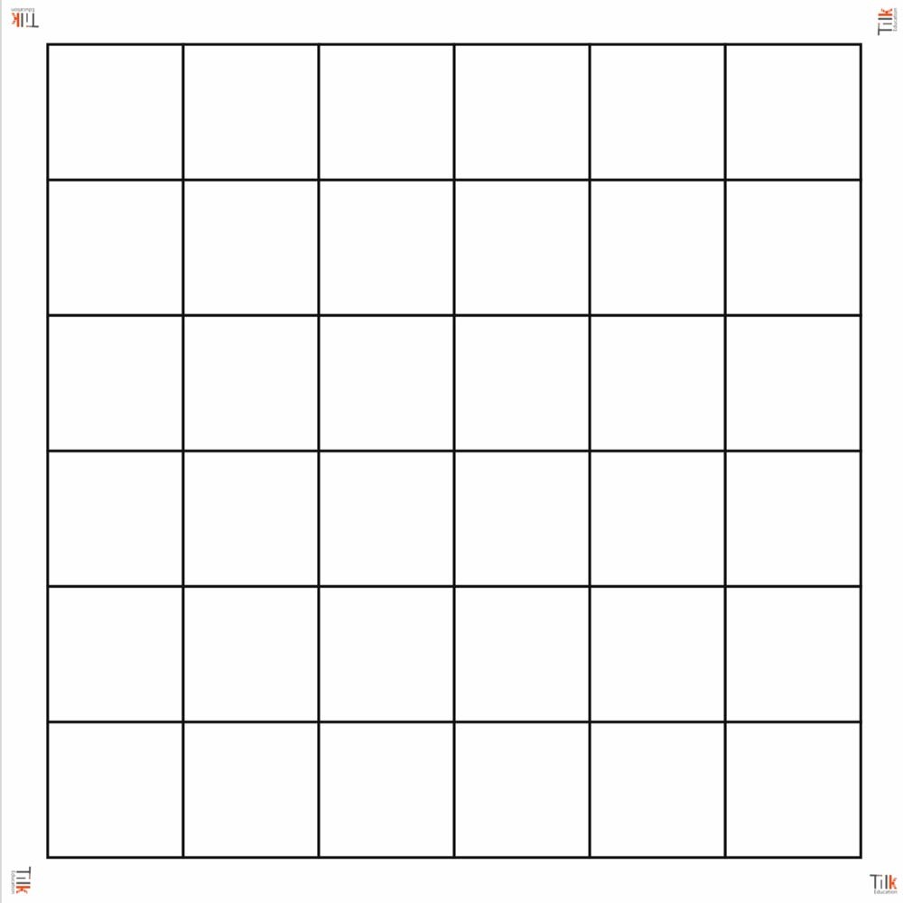 El tapete blanco es una cuadrícula de 6 por 6 cuadros de 15 cm de lado, que es la longitud que avanza el Bee-Bot® en cada orden de desplazamiento.